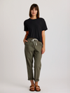 Relaxed through the body with added stretch that moves with you